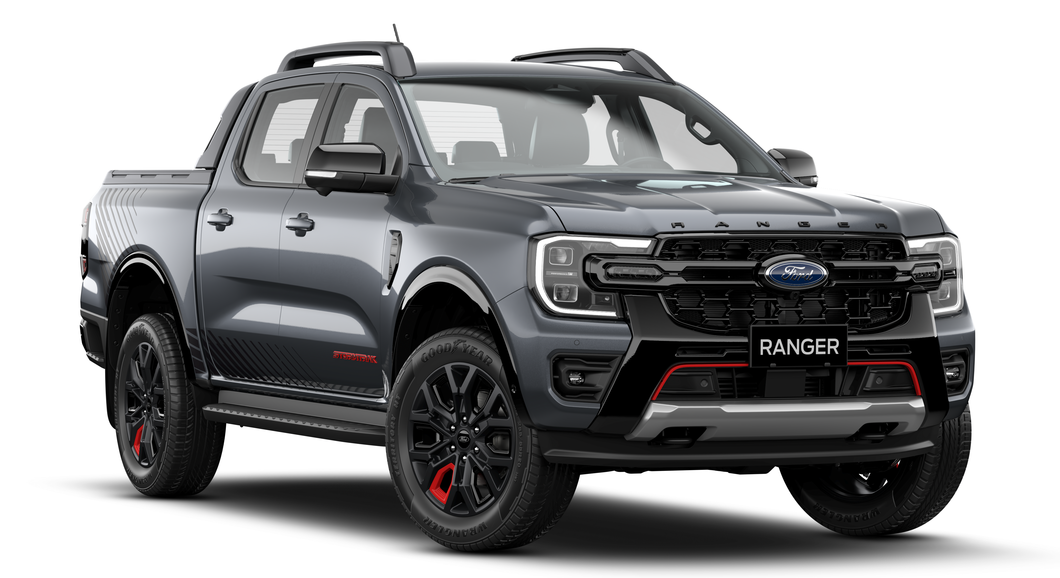 Kết hợp cùng hệ thống đèn pha LED Matrix và dải đèn trợ sáng hai bên, lưới tản nhiệt thiết kế mới tăng thêm sự mạnh mẽ và cá tính cho Ford Ranger Stormtrak.